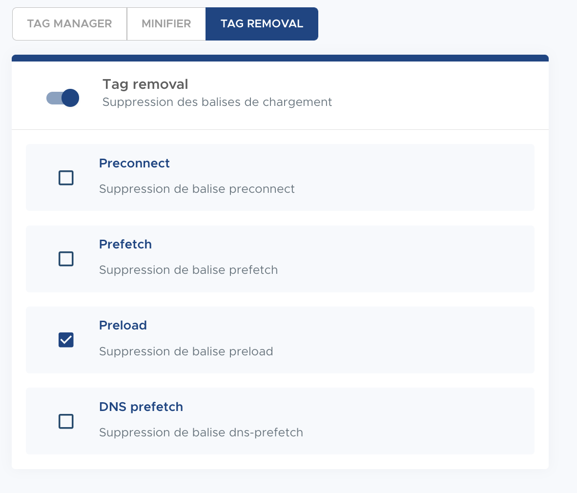 Avec Tag Removal, Fasterize supprime automatiquement ces balises lorsqu’elles ne sont pas pertinentes.